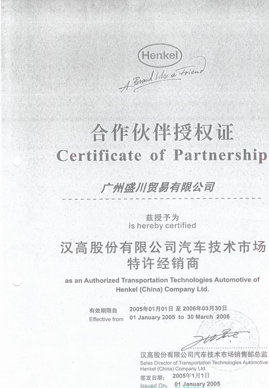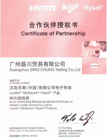 2006年乐天工业授权证 2006年盛川电子授权证 2006年盛川汽车授权证 2006年四海电子授权证 五星级经销商证书 ISO9001 ISO14001 SGS—OHSAS18001 SGS—ISO/TS16949